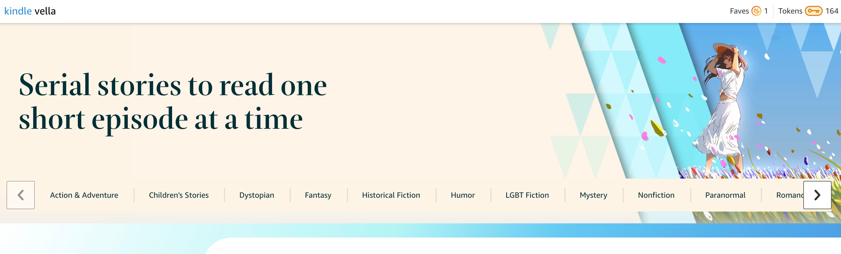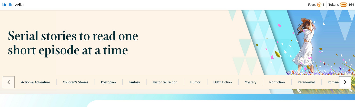To read the Vellas, you must buy low-cost tokens (easy to buy, especially if you already are an Amazon customer. The first three episodes of any Vella are free. After that, the cost to read depends on the word count of the episode. The tokens cost $1.99 for 200 tokens, and you can read roughly 20,000 words for that amount. The cost goes down the more tokens you buy.